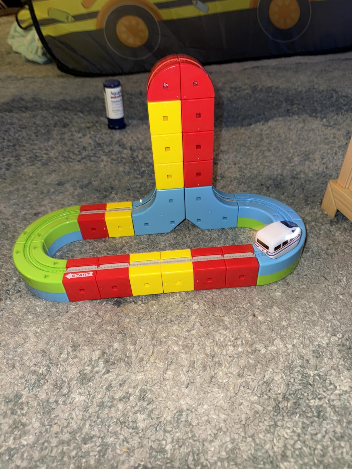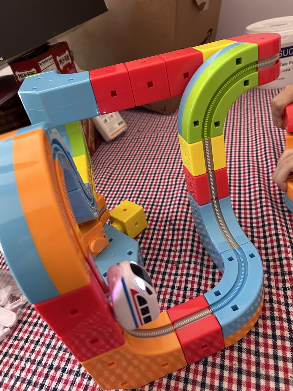 The tracks feature strong, child-safe magnets that snap together easily to create stable connections. The magnetic system is completely enclosed within the track pieces, so there are no loose magnets that could pose a safety risk. Children can build bridges, slopes, and winding courses that stay securely connected during play.