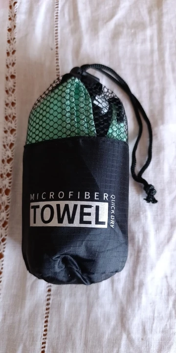 Arrived very quickly, the bag very cool, the towel somewhat smaller than I thought, a pleasant touch.
